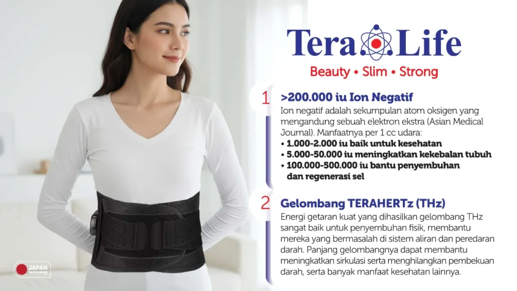 Tidak hanya sekadar korset wanita biasa yang hanya menekan perut, TeraLife adalah korset kesehatan untuk pinggang yang memberikan terapi hangat untuk melancarkan sirkulasi darah dan meredakan nyeri.