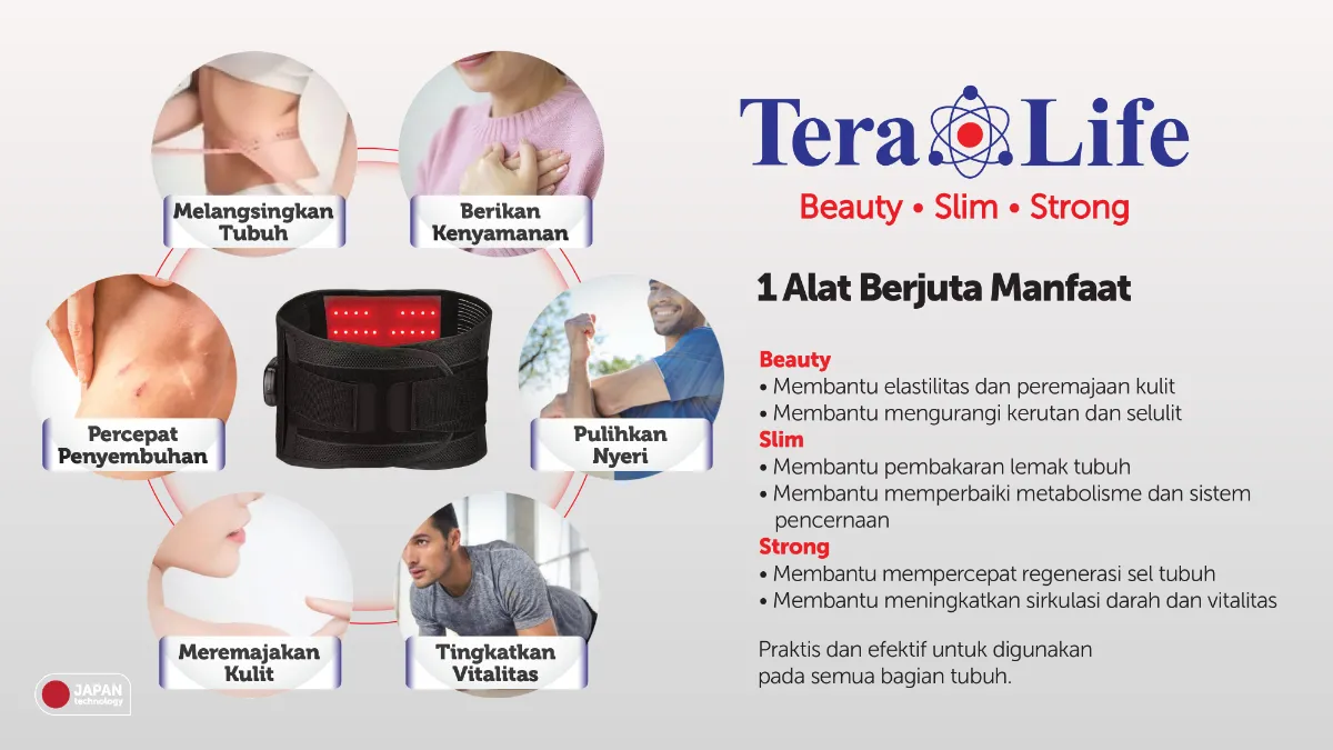 Gunakan TeraLife untuk melangsingkan tubuh, memberikan kenyamanan, memulihkan nyeri, dan mempercepat penyembuhan pada semua bagian tubuh Anda.